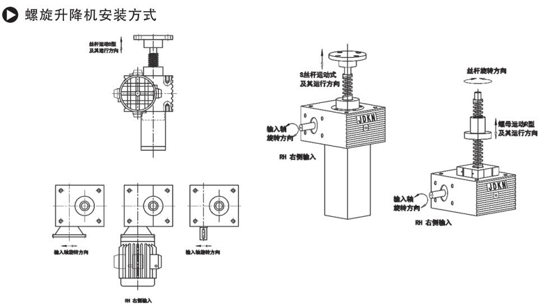 SJA螺旋升降機又稱SJA絲杠升降機,本產品是一種超重部件,可起升、下降及借助附件實現推進、翻轉及各種高度位置調整等功能。結構及裝配形式可選,可按客戶要求定制,安裝方便、使用靈活、功能多、配套及形式多、可靠性好、使用壽命長等優點。