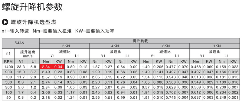 螺旋升降機正常工作狀態下的輸入功率不能超過最大輸入功率,輸入功率kw=(滿載扭矩Nm x負載率x輸入轉速rpm )/ 9550m,