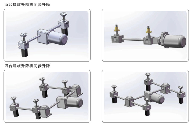 絕對同步同一臺電機可同時驅動多臺螺旋升降機,達到機械同步。