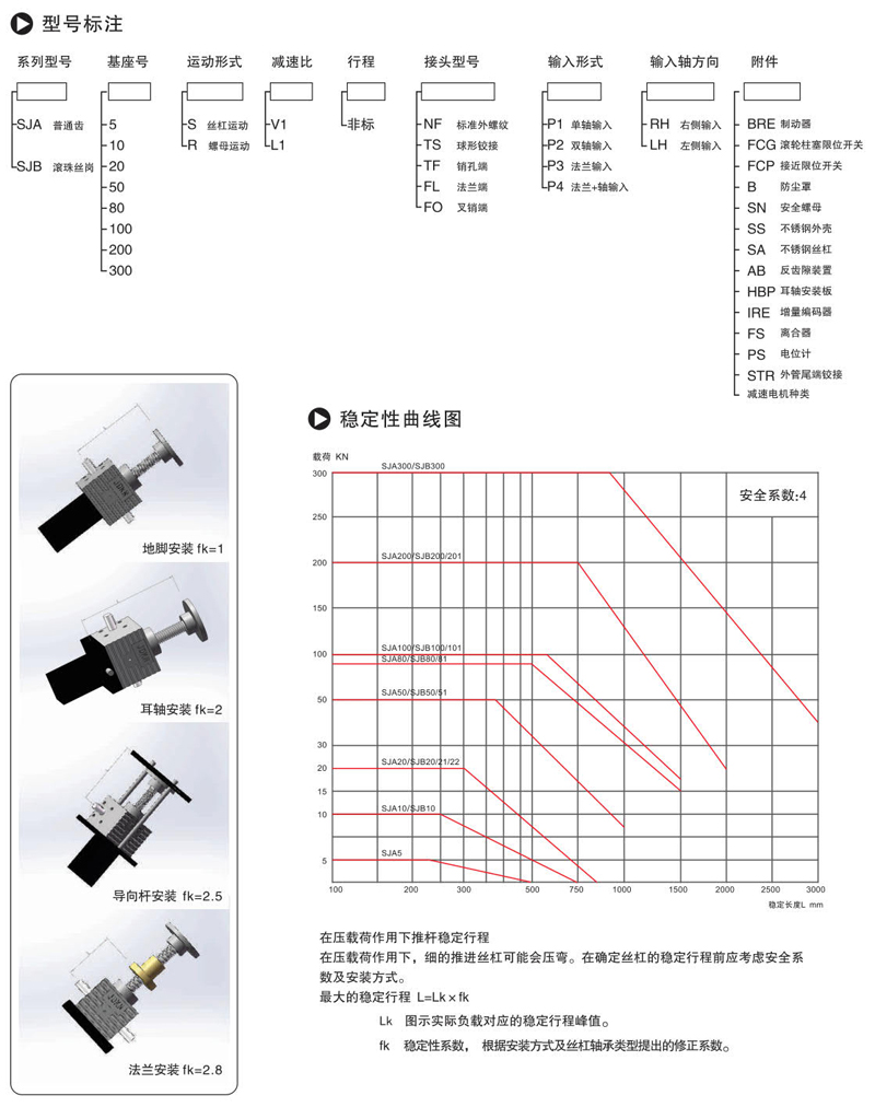 當螺旋升降機兩端鉸接安裝時適當提高組合系數。
